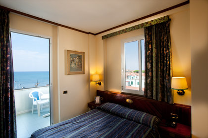 Moquette e tendaggi colorati impreziosiscono le stanze rendendole più calde ed accoglienti. Senza variazione di prezzo, potete prenotare camere con balcone vista mare, per godervi ogni mattina lo spettacolare panorama che offre il nostro litorale e la salubre aria salmastra.